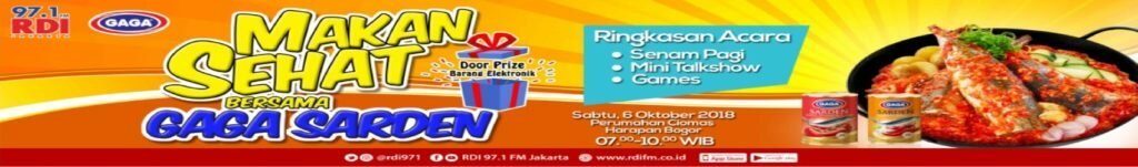 GAGA Sarden membuat event ber-tema-kan "Makan sehat bersama GAGA Sarden" yang akan di gelar pada 07 October 2018 di Perumahan Taman Sari Bukit Damai Gunung Sindur Parung, Bogor. Acara yang akan dilakukan seperti senam pagi, mini talkshow, games dan doorprize barang elektronik.